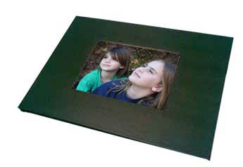 capa dura revestida em diversas cores, com uma janela central