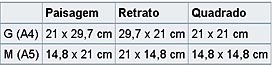Tamanhos |